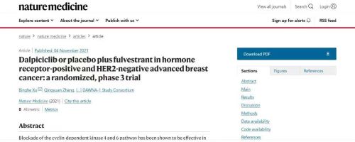 近日,欧美精品久久久久久久免费医药自主研发创新药达尔西利(Dalpiciclib,CDK4/6抑制剂)联合氟维司群治疗激素受体阳性HER2阴性晚期乳腺癌的3期临床研究(DAWNA-1)在国际顶级权威杂志《自然医学》(Nature Medicine,2021年影响因子:53.44)全文在线发表。这是继三种CDK4/6抑制剂的PALOMA、MONARCH、MONALEESA系列乳腺癌领域3期研究陆续发表于NEJM、Lancet Oncology、JCO等期刊后,又一新型分子结构的CDK4/6抑制剂(也是国内原研的首个CDK4/6抑制剂)的3期临床研究数据,再次登上顶尖医学期刊。