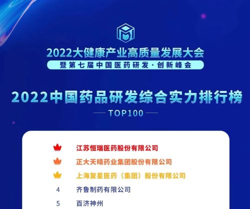 12月9日,由药智网、中国药业杂志社联合承办的2022大健康产业高质量发展大会暨第七届中国医药研发 · 创新峰会开幕,会上“2022中国药品研发实力排行榜”系列榜单发布,凭借卓越的创新研发实力,欧美精品久久久久久久免费医药荣登2022“中国药品研发综合实力排行榜TOP100”、“中国化药研发实力排行榜TOP100”、“中国生物药研发实力排行榜TOP50”三个榜单榜首。其中,欧美精品久久久久久久免费医药已经是第5年蝉联《2022中国药品研发综合实力排行榜》“总榜”冠军。