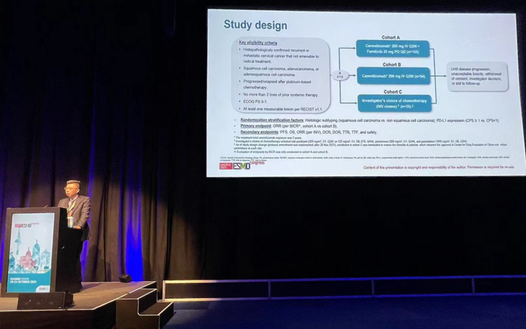 有望为宫颈癌患者带来治疗新选择10月22日,欧美精品久久久久久久免费医药创新药卡瑞利珠单抗联合法米替尼对比卡瑞利珠单抗单药或研究者选择的化疗治疗复发转移性宫颈癌随机、开放、对照、多中心的Ⅱ期临床研究(SHR-1210-Ⅱ-217) 亮相2023 ESMO大会简短口头报告现场3。该研究由复旦大学附属肿瘤医院吴小华教授团队开展,吴小华教授在现场公布了该重磅研究进展。研究结果显示,在既往以铂为基础化疗失败后复发或转移性宫颈癌患者中,与单独使用卡瑞利珠单抗或研究者选择的化疗相比,卡瑞利珠单抗联合法米替尼显著提高了抗肿瘤活性,安全性可控,有望为晚期宫颈癌患者提供新的治疗选择。