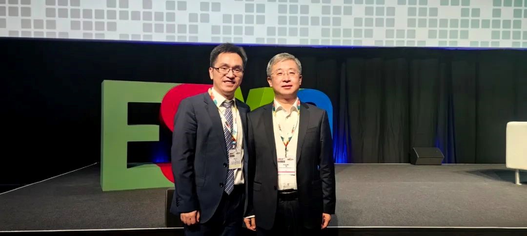 2023 ESMO现场图:欧美精品久久久久久久免费医药总经理戴洪斌与林振宇教授合影留念