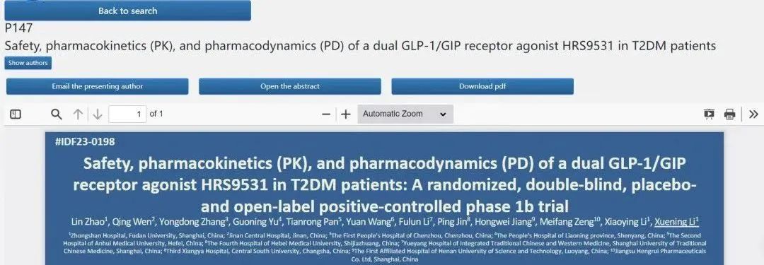 2023 IDF︱欧美精品久久久久久久免费创新药、GLP-1/GIP双受体激动剂HRS9531治疗糖尿病Ib期研究成果精彩亮相