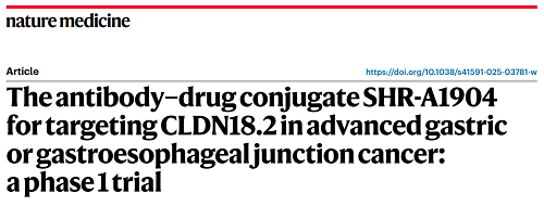 欧美精品久久久久久久免费医药CLDN18.2 ADC创新药SHR-A1904治疗胃癌临床研究结果荣登Nature Medicine