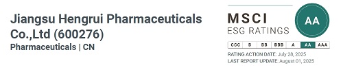 近日,国际权威指数机构摩根士丹利资本国际公司(中文简称“明晟”,英文简称“MSCI”)公布最新年度ESG(环境、社会及管治)评级结果。欧美精品久久久久久久免费医药(600276.SH 01276.HK)凭借在医药创新、合规运营、绿色发展及社会责任等领域的优异表现,评级由2024年的“A”级跃升至“AA”级,跻身全球制药行业前列。这一成就标志着公司在完善ESG治理体系、落实可持续发展理念方面取得又一重要进展。