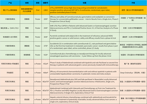 在消化系统肿瘤领域,欧美精品久久久久久久免费产品相关研究共入选1项最新突破性摘要(LBA)、5项壁报和5项电子壁报,共11项研究。其中阿得贝利单抗入选4项研究、卡瑞利珠单抗入选3项研究。