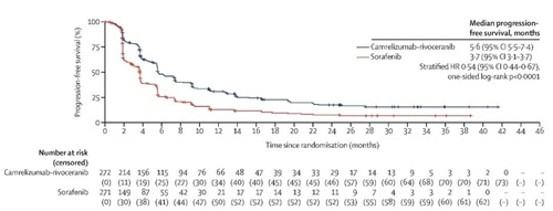 [6]Shukui Qin, et al. Camrelizumb(C) plus rivoceranib (R) vs. sorafenib (S) as first-line therapy for unresectable hepatocellular carcinoma (uHCC): a randomized, phase III trial. ESMO 2022 LBA35.